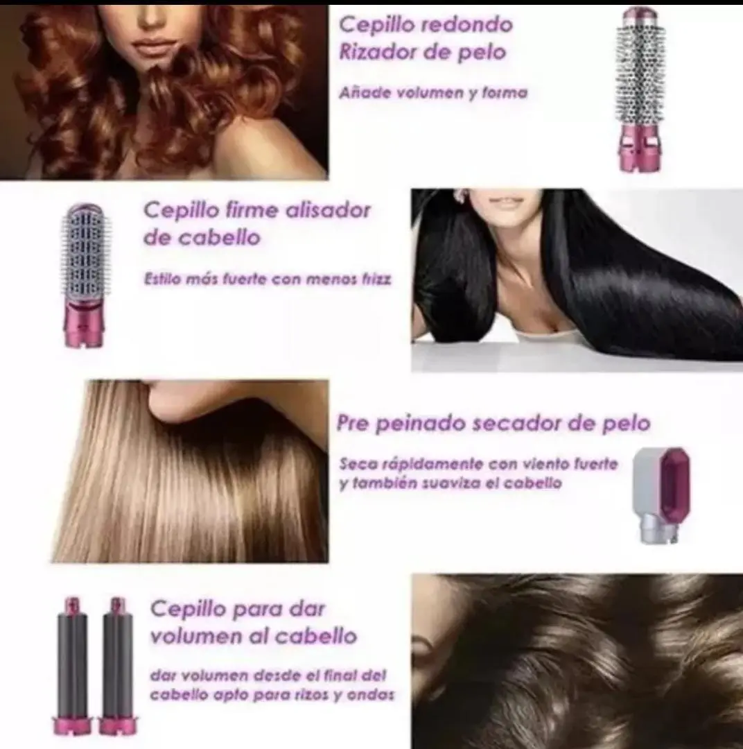 💨 5 funciones en 1: alisado, secado, rizos grandes, rizos finos, brushing y volumen.